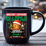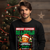 Turn up the holiday humor with our "Freak on the Cookie Sheet" DTF transfer! Featuring a playful gingerbread man caught in a hilarious "indecent exposure" mugshot scene, this cheeky design is perfect for adding a fun twist to your holiday wardrobe. With bold text, vibrant colors, and festive details like Christmas trees and candy canes, this design is ideal for t-shirts, sweatshirts, or unique holiday gifts.